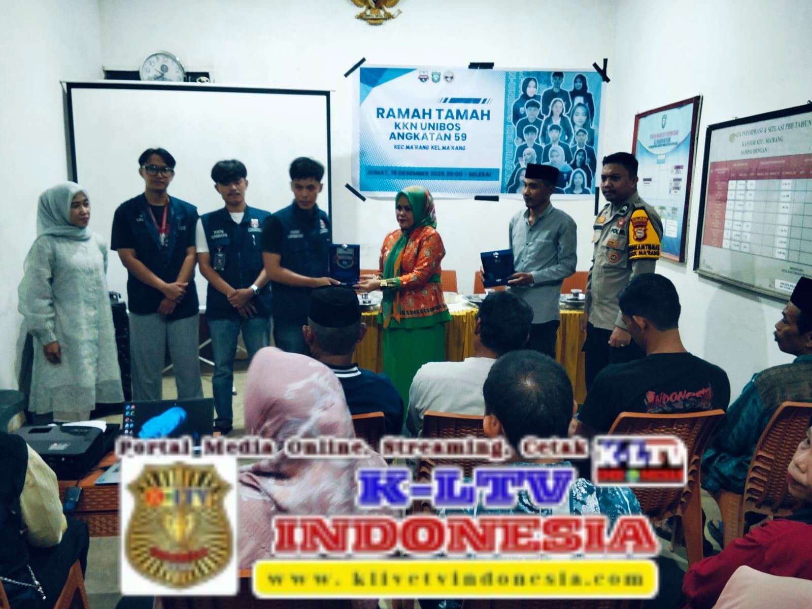 klivetvindonesia.com,Ma’rang – Dalam rangka mendukung suksesnya pelaksanaan Kuliah Kerja Nyata (KKN) Mahasiswa Universitas Bosowa Makassar Angkatan 59, Bhabinkamtibmas Kelurahan Ma’rang, Briptu H. Rachman, menghadiri kegiatan Malam Ramah Tamah mahasiswa KKN yang digelar di Posko KKN 59 Unibos, Kantor Kelurahan Ma’rang, Kecamatan Ma’rang, Kabupaten Pangkep, Jumat (19/12/2025) malam.