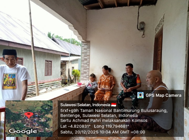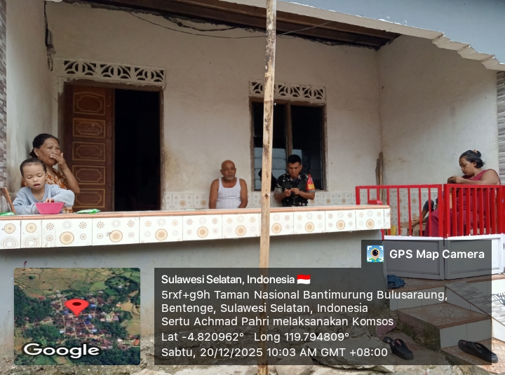 klivetvindonesia.com,PANGKEP — Dalam rangka mempererat silaturahmi serta meningkatkan kesadaran masyarakat terhadap keselamatan dan kewaspadaan lingkungan, Babinsa Desa Lanne, Sertu Achmad Pahri, melaksanakan kegiatan Komunikasi Sosial (Komsos) bersama warga di RT 12 RK 06 Kampung Bilango, Dusun Manjalling, Desa Lanne, Kecamatan Tondong Tallasa, Kabupaten Pangkep, pada Sabtu, 20 Desember 2025, sekitar pukul 10.00 Wita.