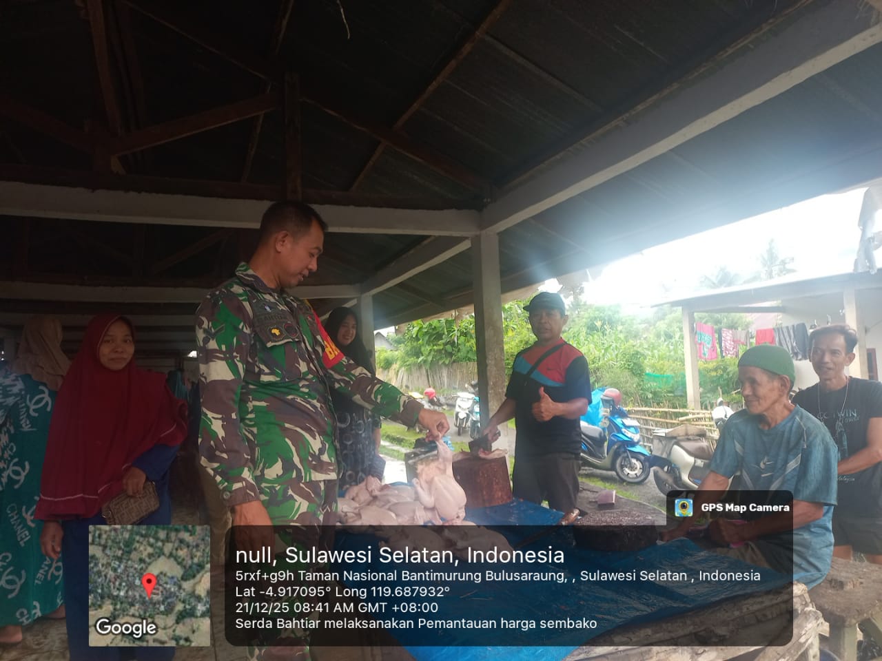 klivetvindonesia.com,PANGKEP — Dalam rangka menjaga stabilitas harga serta memastikan ketersediaan bahan kebutuhan pokok masyarakat, Babinsa Kelurahan Balleangin, Serda Bahtiar, melaksanakan kegiatan pemantauan harga jual beli bahan pokok di Pasar Balleangin, Kelurahan Balleangin, Kecamatan Balocci, Kabupaten Pangkep, pada Minggu, 21 Desember 2025.