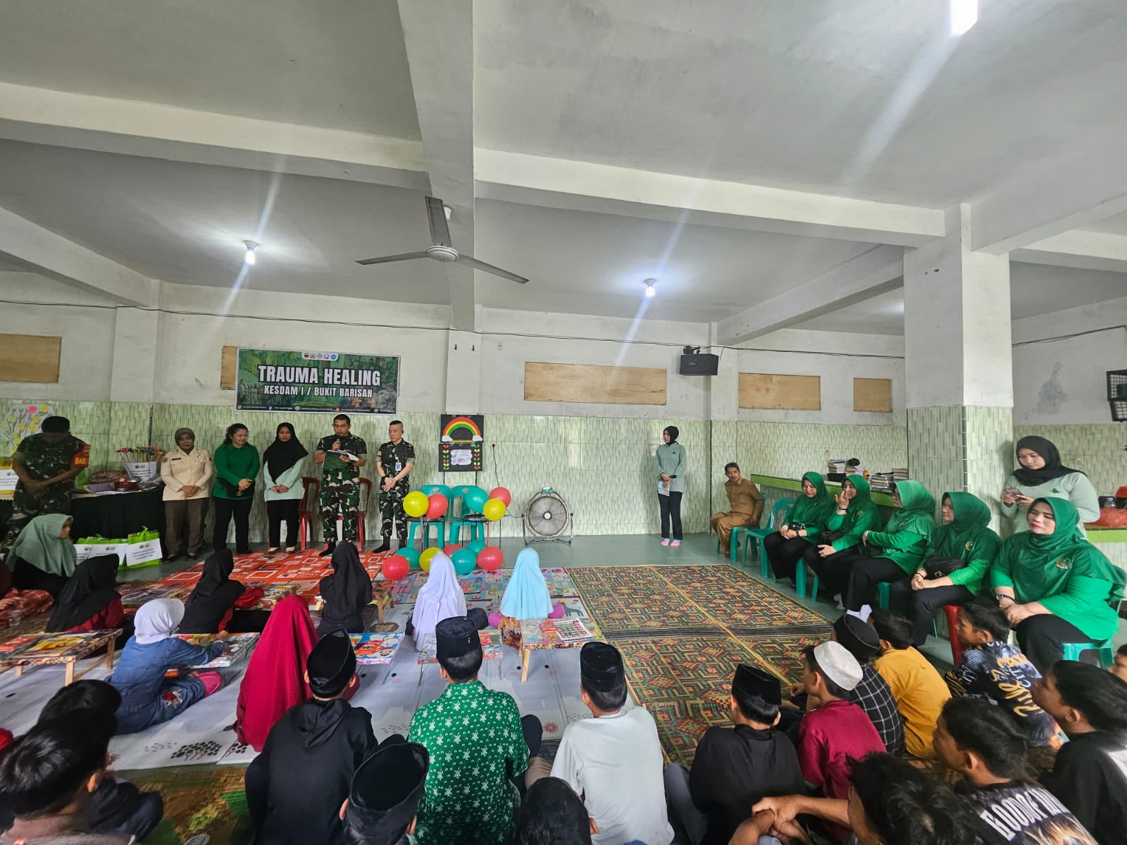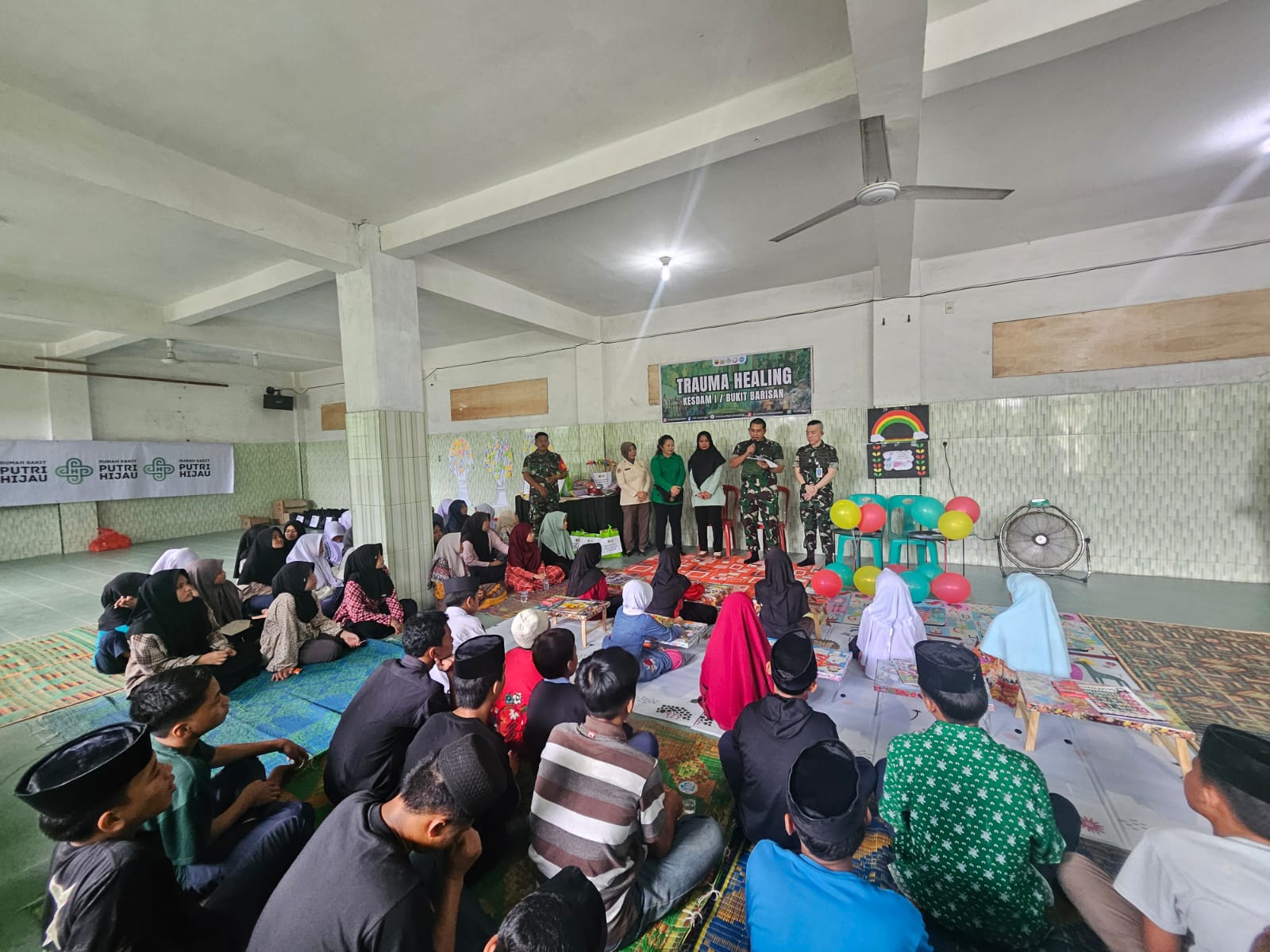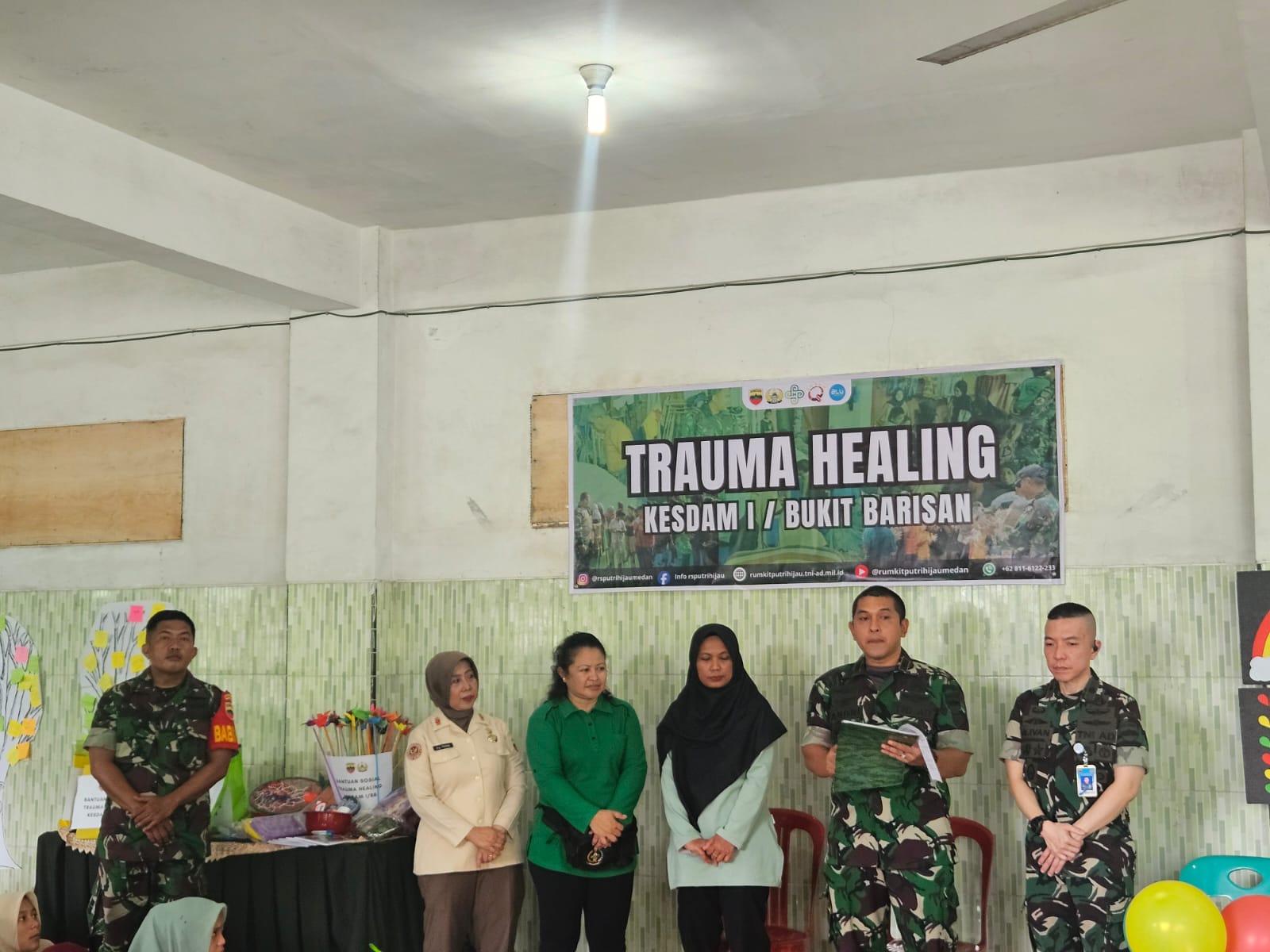 Kegiatan tersebut dilaksanakan Kesdam I/BB bersama Persit Kartika Chandra Kirana (KCK) Ranting 5 Kesehatan Cabang IV PD I/BB sebagai bentuk kepedulian TNI terhadap pemulihan kesehatan mental dan psikososial anak-anak pascabencana.