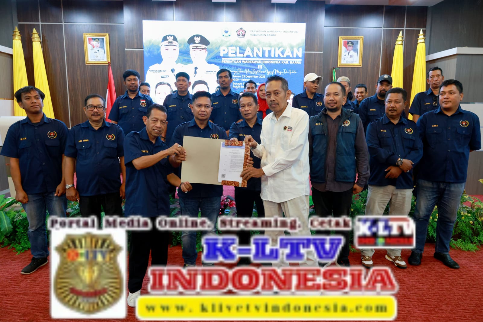 BARRU- KLTV INDONESIA klivetvindonesia.com. Barru — Pengurus Persatuan Wartawan Indonesia (PWI) Kabupaten Barru periode 2025–2028 resmi dilantik oleh Ketua PWI Sulawesi Selatan Agus Salim Alwi Hamu yang diwakili Wakil Ketua Bidang Organisasi PWI Sulsel, H. Abdul Manaf, Selasa (23/12/2025).