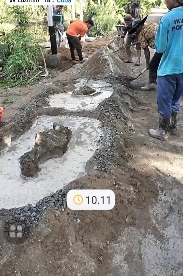 Tim turun kelapangan memastikan keakuratan informasi yang di terima, alhasil fakta lapangan terlihat jelas para pekerja mengaduk semen secara manual diatas jalan.