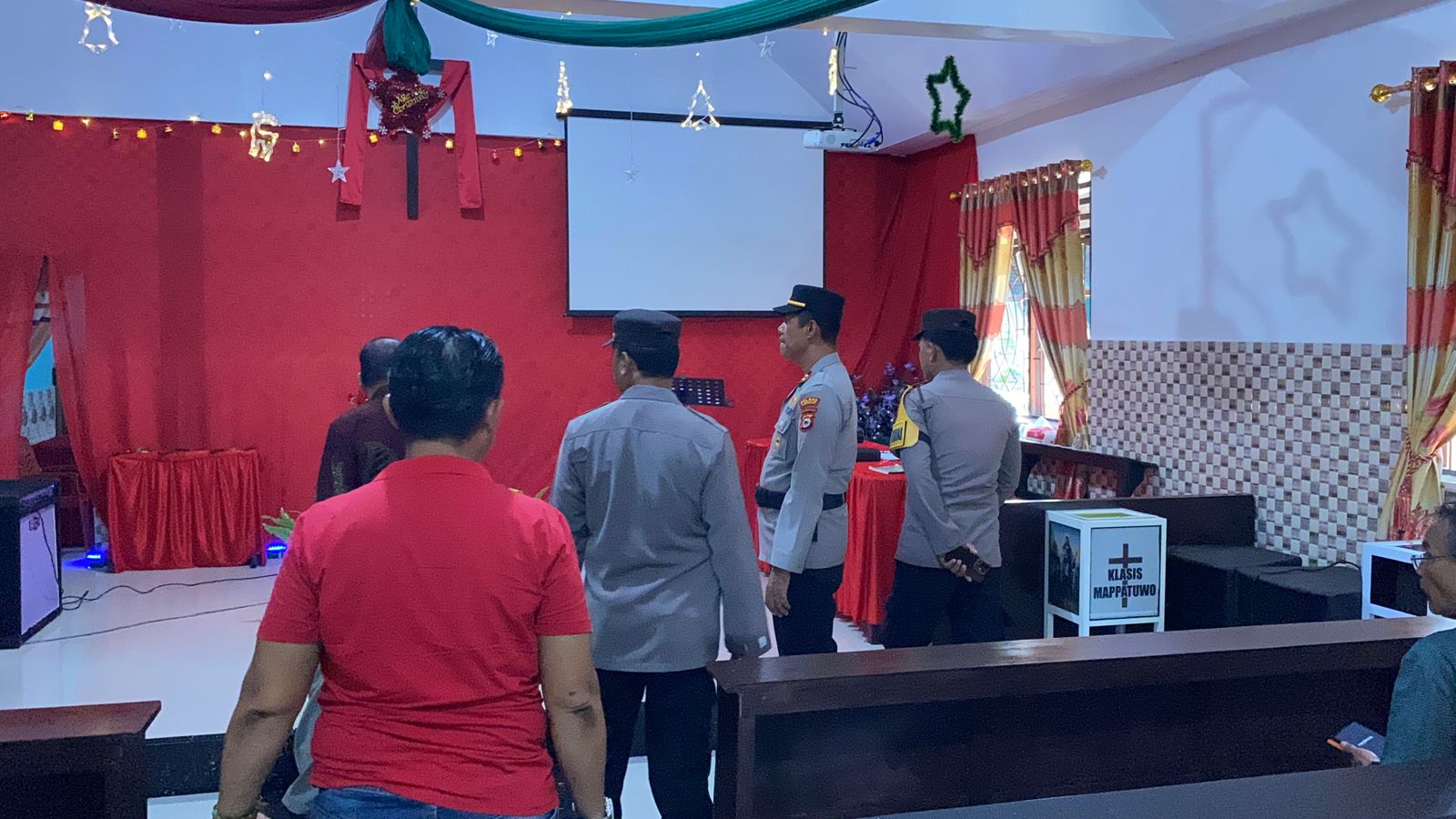 PANGKEP- KLTV INDONESIA klivetvindonesia.com.Ma’rang – Dalam rangka memberikan rasa aman dan nyaman kepada umat Kristiani yang akan melaksanakan ibadah Natal Tahun 2025, Plh.Kapolsek Ma’rang IPTU Hasri Laco memimpin langsung pelaksanaan sterilisasi di Gereja Kristen Sulawesi Selatan (GKSS) Klasis Mappatuwo Pangkep Jemaat Padang Lampe, Ahad (25/12/2025) sekitar pukul 08.00 Wita.