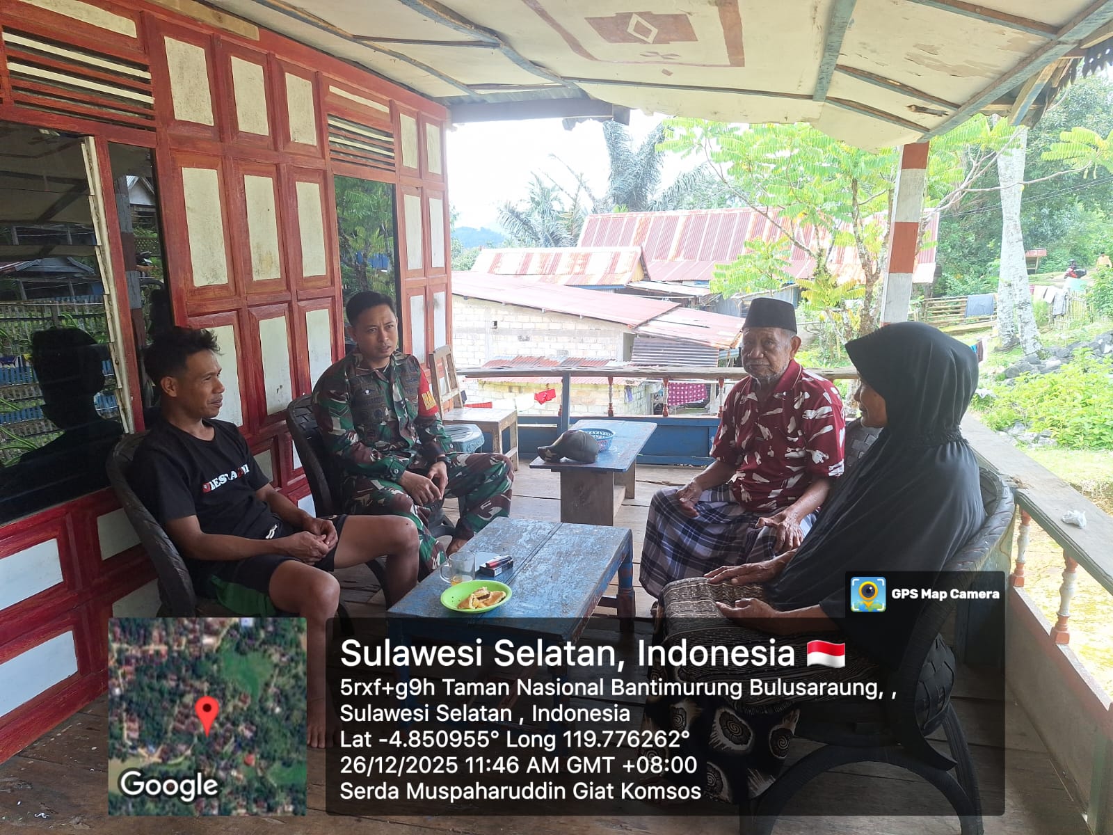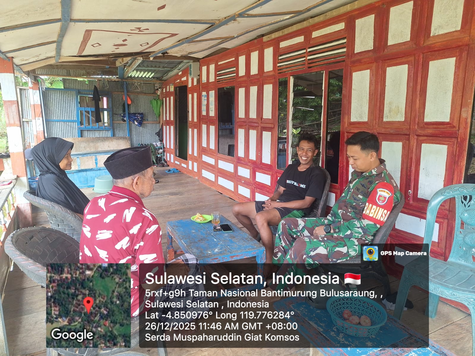 PANGKEP- KLTV INDONESIA klivetvindonesia.com. Pangkep – Guna mempererat tali silaturahmi serta meningkatkan kesadaran masyarakat terkait keamanan lingkungan, Babinsa Desa Bonto Birao, Serda Muspaharuddin, melaksanakan kegiatan komunikasi sosial (Komsos) bersama warga Kampung Bonto Desa, Kecamatan Tondong Tallasa, Kabupaten Pangkep, pada Jumat (26/12/2025) sekitar pukul 10.45 Wita.