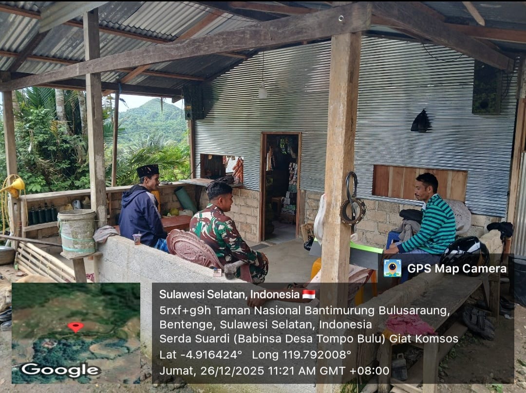 PANGKEP- KLTV INDONESIA klivetvindonesia.com.Balocci, Pangkep — Komunikasi sosial (Komsos) terus dilakukan oleh aparat kewilayahan guna memperkuat hubungan dengan masyarakat dan meningkatkan ketahanan lingkungan desa. Pada Jumat, 26 Desember 2025 pukul 10.15 Wita, Serda Suardi, Babinsa Desa Tompo Bulu, melaksanakan kegiatan Komsos di depan rumah warga bernama Bapak Ulla, tepatnya di Kampung Benteng RT 01, RK 02, Dusun 02 Bajeng, Desa Tompo Bulu, Kecamatan Balocci, Kabupaten Pangkep.