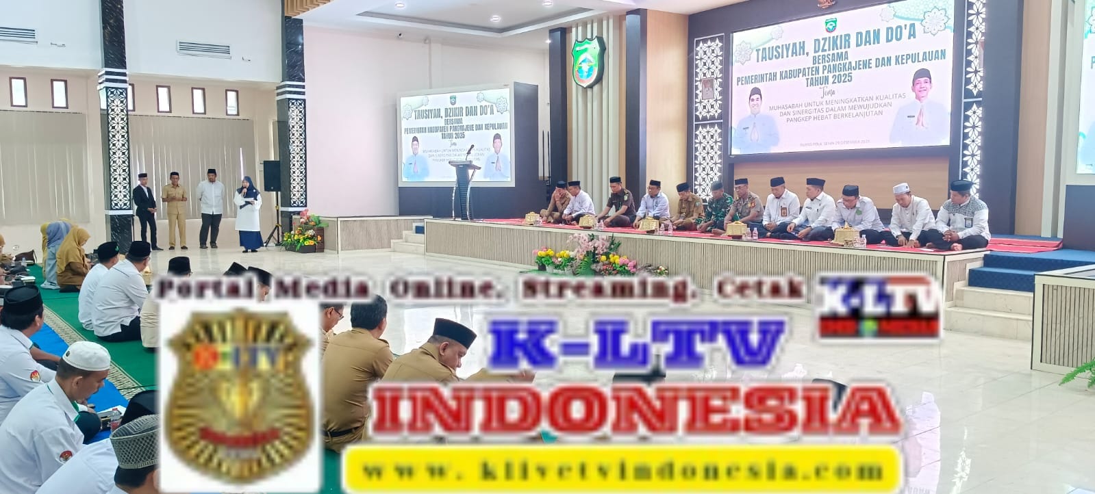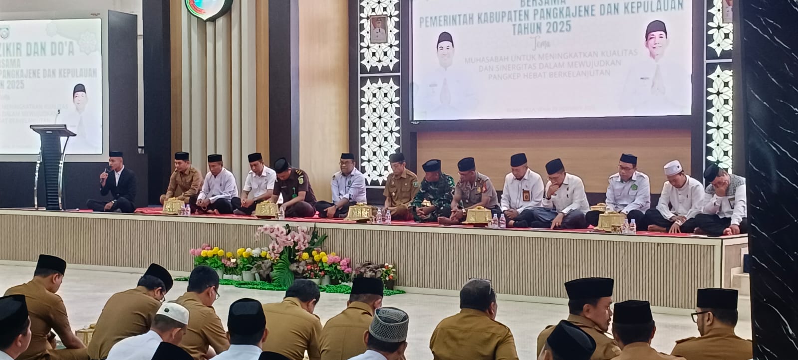 PANGKEP- KLTV INDONESIA klivetvindonesia.com.PANGKEP — Pemerintah Kabupaten Pangkajene dan Kepulauan menggelar kegiatan Tausyiah, Dzikir dan Doa Akhir Tahun 2025 bersama unsur Forkopimda dan seluruh jajaran pemerintahan daerah, pada Senin (29/12/2025) sekitar pukul 09.30 Wita, bertempat di Ruang Pola Pemda Pangkep, Jalan Sultan Hasanuddin, Kelurahan Bonto Kio, Kecamatan Minasatene, Kabupaten Pangkep.