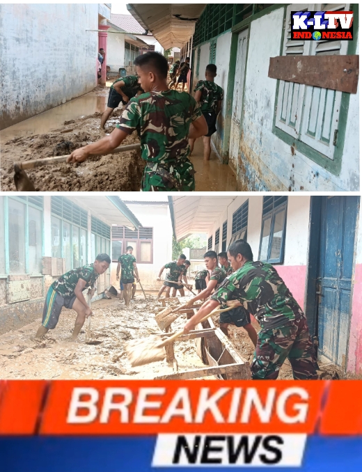 –klivetvindonesia.com– Tapanuli Tengah — Satgas Gulbencal Kodam I/Bukit Barisan melaksanakan kegiatan pembersihan fasilitas pendidikan di SD Negeri 1 A Tukka, Kecamatan Tukka, Kabupaten Tapanuli Tengah, Minggu (28/12/2025), menyusul bencana alam banjir yang menggenangi area sekolah.