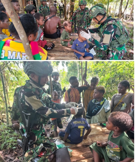 –klivetvindonesia.com– Kenyam – Dalam rangka meningkatkan kesejahteraan serta mempererat hubungan dengan masyarakat, Personel Satgas Pamtas Mobile RI–PNG Yonif 300/Brajawijaya Pos Quary Bawah melaksanakan kegiatan patroli sekaligus anjangsana dan pelayanan kesehatan kepada warga Kampung Kolam, Distrik Kenyam, Kabupaten Nduga, Papua. Selasa (30/12/2025).