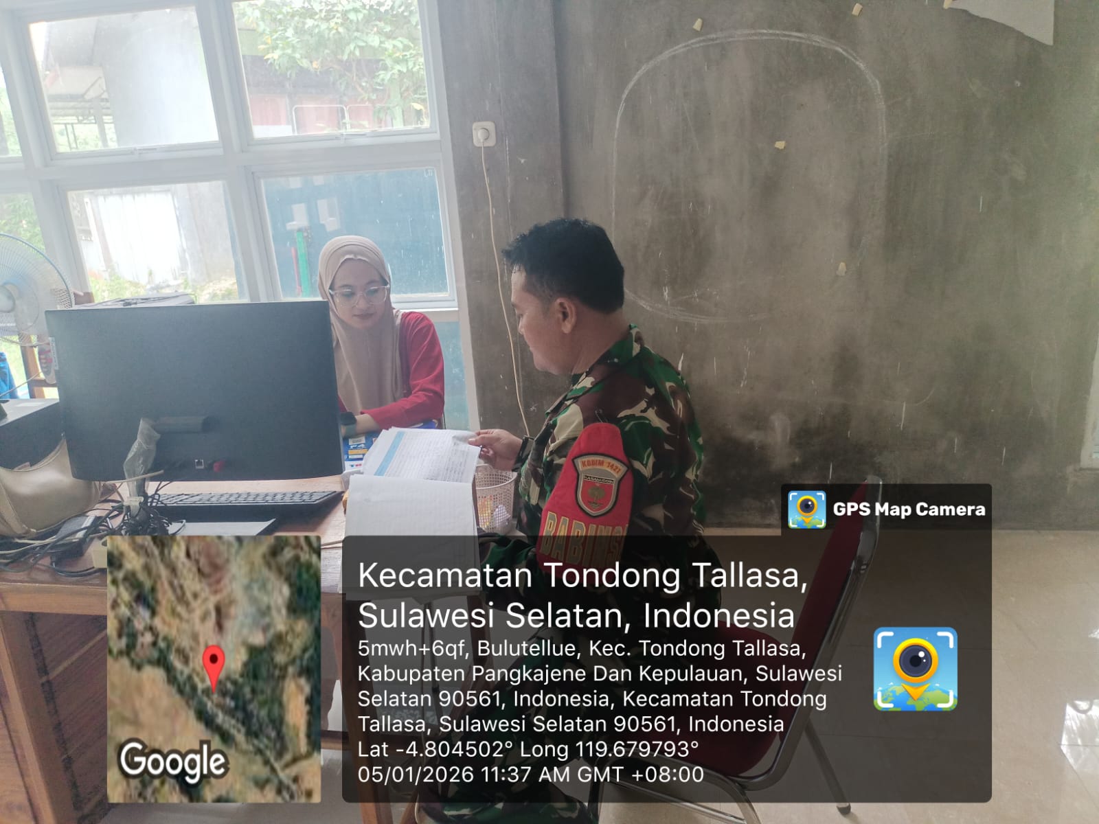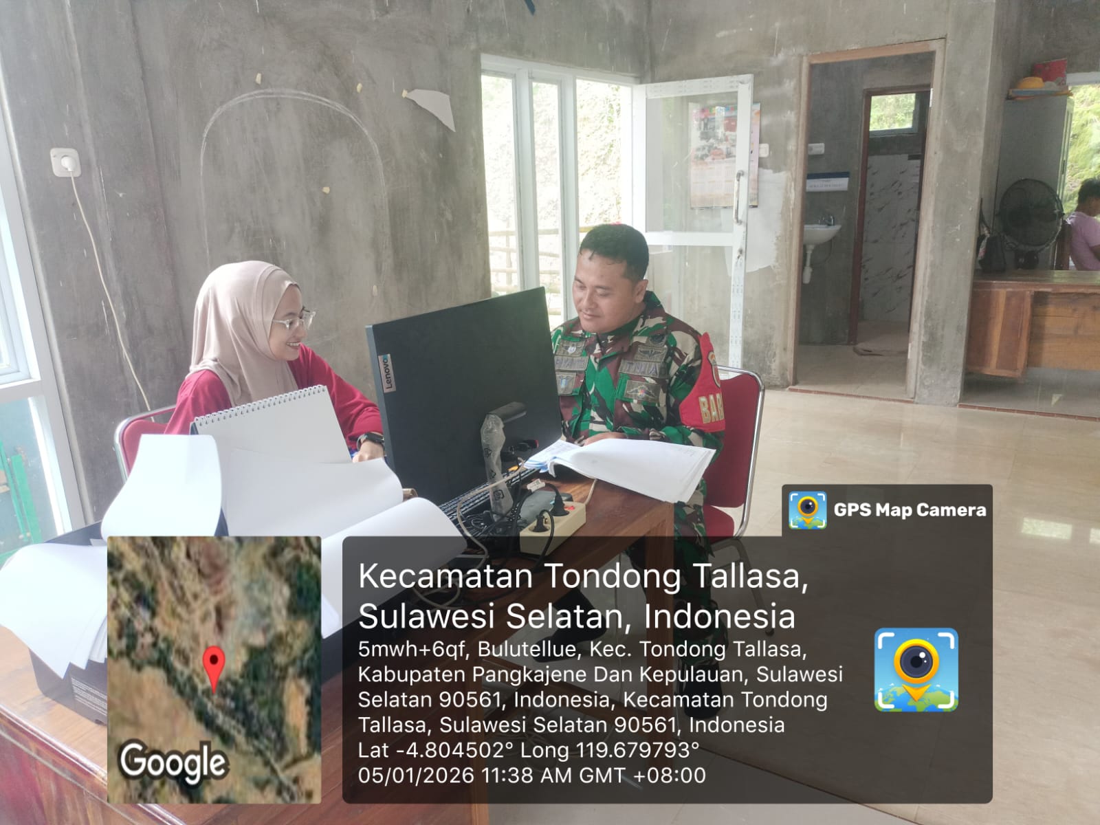 PANGKEP- KLTV INDONESIA klivetvindonesia.com.Pangkep — Dalam rangka memperbaharui dan memutakhirkan data wilayah binaan, Babinsa Desa Bulu Tellue, Sertu Ariyanto, melaksanakan kegiatan Pengumpulan Data Teritorial (Puldata Ter) pada Senin, 5 Januari 2026, bertempat di Kantor Desa Bulu Tellue, Kecamatan Tondong Tallasa, Kabupaten Pangkep.