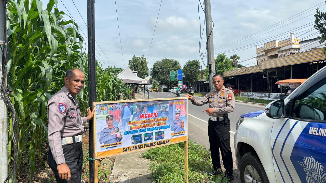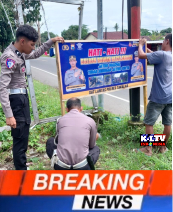 –klivetvindonesia.com – Guna menumbuhkan kesadaran masyarakat terhadap pentingnya keselamatan berlalu lintas, Unit Keamanan dan Keselamatan (Kamsel) Satuan Lalu Lintas Polres Takalar melaksanakan kegiatan pemasangan spanduk imbauan keselamatan berkendara, Senin (5/1/2026).