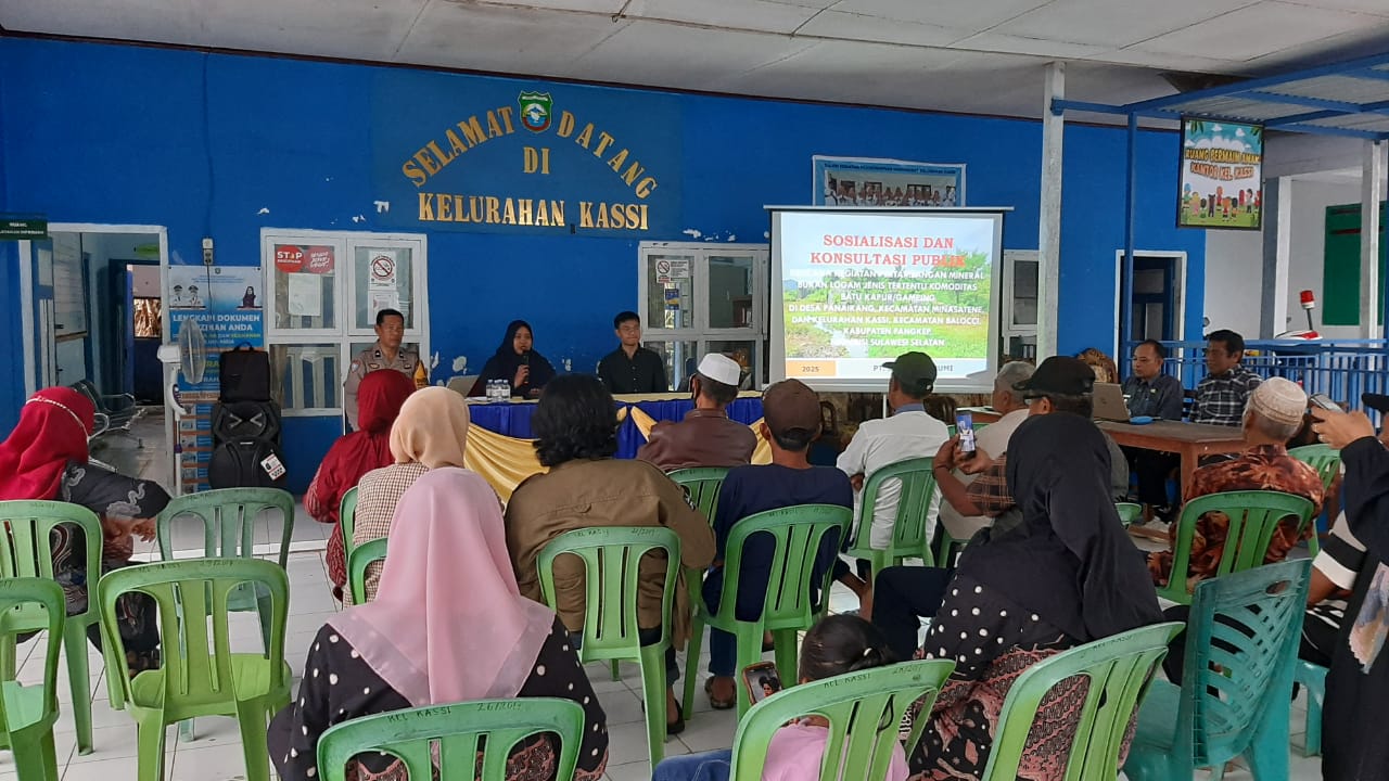 Kegiatan sosialisasi dan konsultasi publik ini dilaksanakan pada hari Kamis, 08 Januari 2026, bertempat di Aula Kantor Kelurahan Kassi, di mulai pada pukul 14.30 WITA dan berakhir pada pukul 15.45 WITA. Kegiatan berlangsung dengan tertib, aman, dan kondusif serta mendapat pengawalan dan pemantauan dari unsur TNI ~ Polri dan pemerintah setempat.