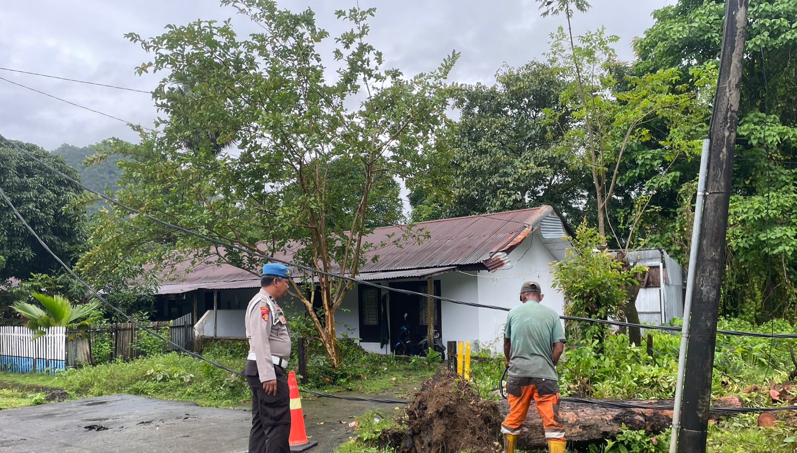 Kejadian tersebut berpotensi membahayakan keselamatan masyarakat serta mengganggu jaringan listrik di sekitar lokasi. Menindaklanjuti hal tersebut, Aipda Zaenal Abidin segera melakukan pengecekan langsung di lokasi guna memastikan situasi tetap aman dan kondusif.