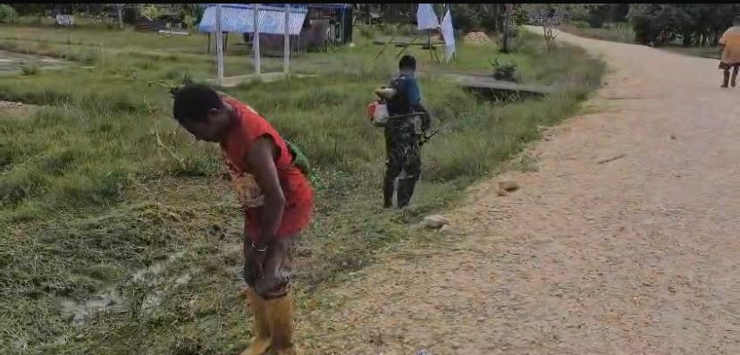 –klivetvindonesia.com– Suswa – Satgas Pamtas RI–PNG Yonif 763/SBA Pos Suswa melaksanakan kegiatan gotong royong bersama masyarakat Kampung Suswa, Distrik Mare, Provinsi Papua Barat Daya, (10/1/2025) sebagai wujud kebersamaan dan kepedulian terhadap lingkungan sekitar.
