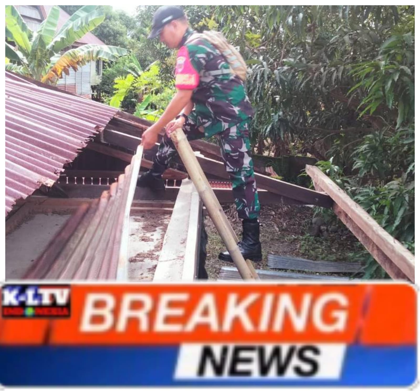 Bencana alam tersebut mengakibatkan sejumlah rumah warga mengalami kerusakan, terutama pada bagian atap rumah. Menyikapi kondisi tersebut, Babinsa bersama aparat kelurahan dan masyarakat setempat melaksanakan karya bakti dengan membersihkan puing-puing bangunan serta membantu perbaikan rumah warga yang terdampak.