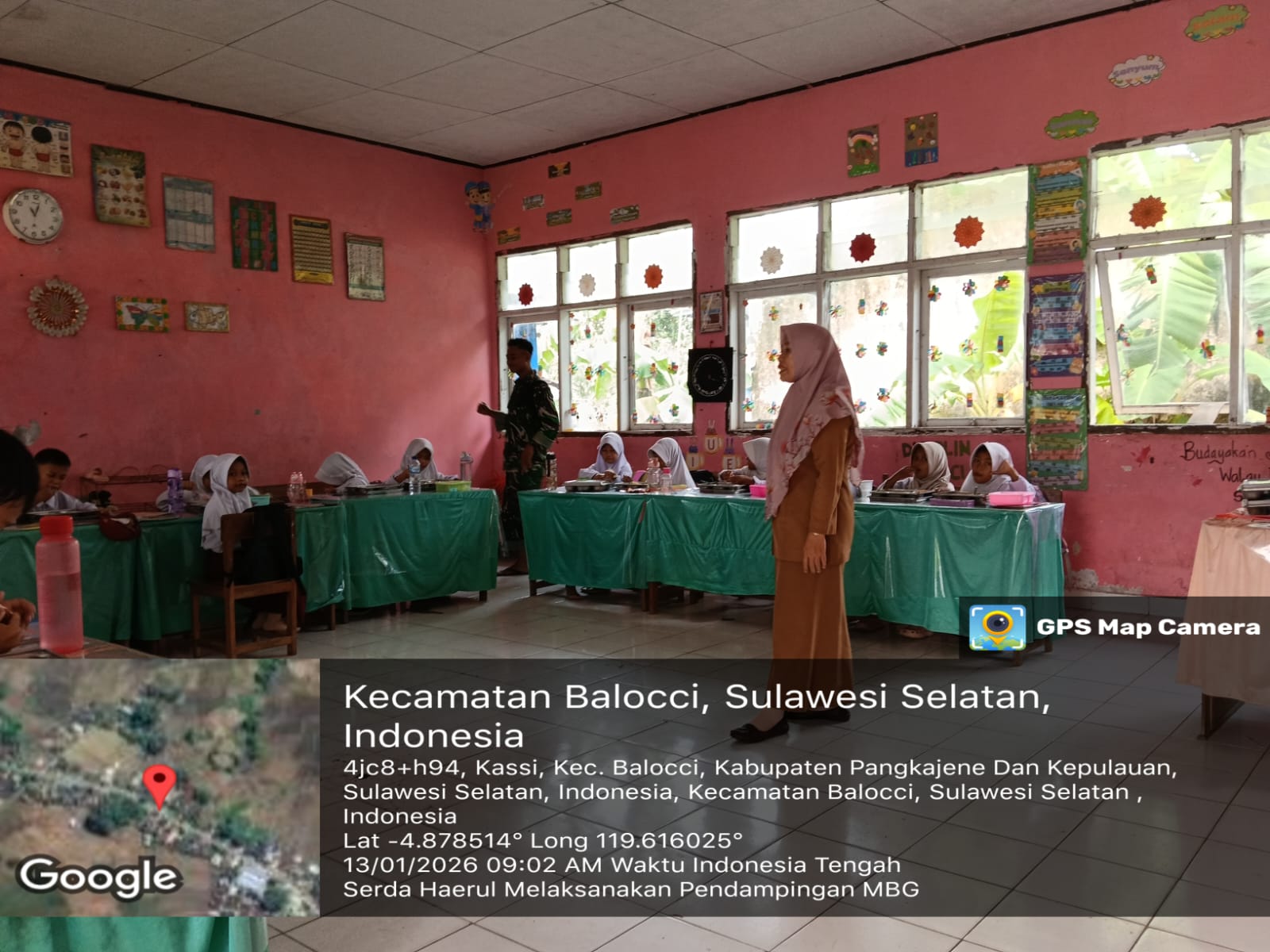 Kegiatan tersebut dilaksanakan pada Selasa, 13 Januari 2026, sekitar pukul 08.50 Wita, bertempat di SDN 1 Kassi, Kelurahan Kassi, Kecamatan Balocci. Pendampingan ini bertujuan untuk memastikan bahwa pelaksanaan program berjalan dengan tertib, aman, serta tepat sasaran, sekaligus memberikan rasa nyaman kepada para siswa selama proses pembagian dan konsumsi makanan bergizi.