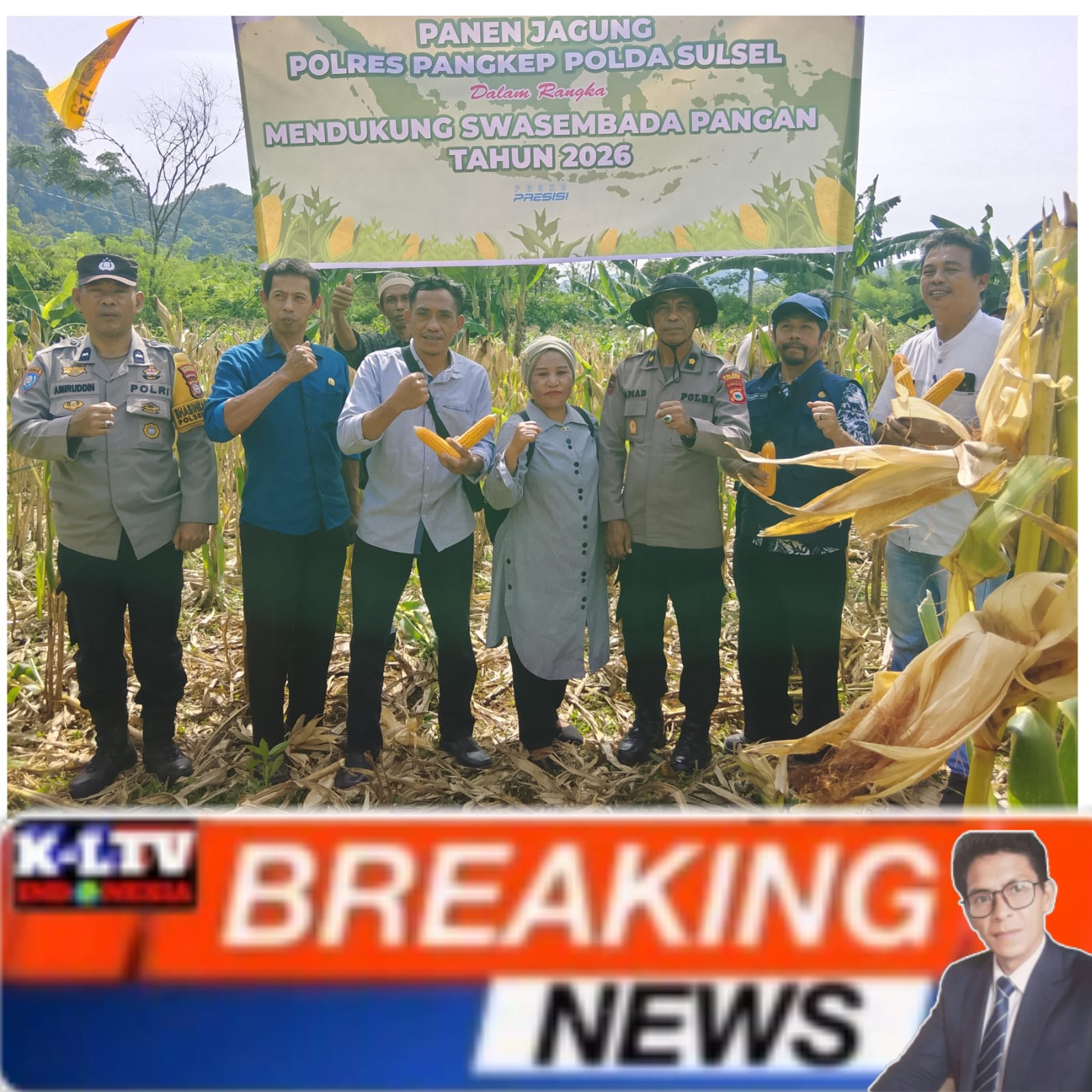 PANGKEP- KLTV INDONESIA klivetvindonesia.com.Balocci Pangkep, ~ Dalam rangka mendukung program Swasembada Pangan Tahun 2026, Bhabinkamtibmas Kelurahan Tonasa Polsek Balocci, Aipda Amiruddin, menghadiri kegiatan Panen Jagung yang diselenggarakan oleh Polres Pangkep. Kegiatan tersebut berlangsung pada hari Jumat, 23 Januari 2026, mulai pukul 09.30 WITA, bertempat di Jalan Wa’ Rambu Tonasa Satu, Kelurahan Tonasa, Kecamatan Balocci, Kabupaten Pangkep.