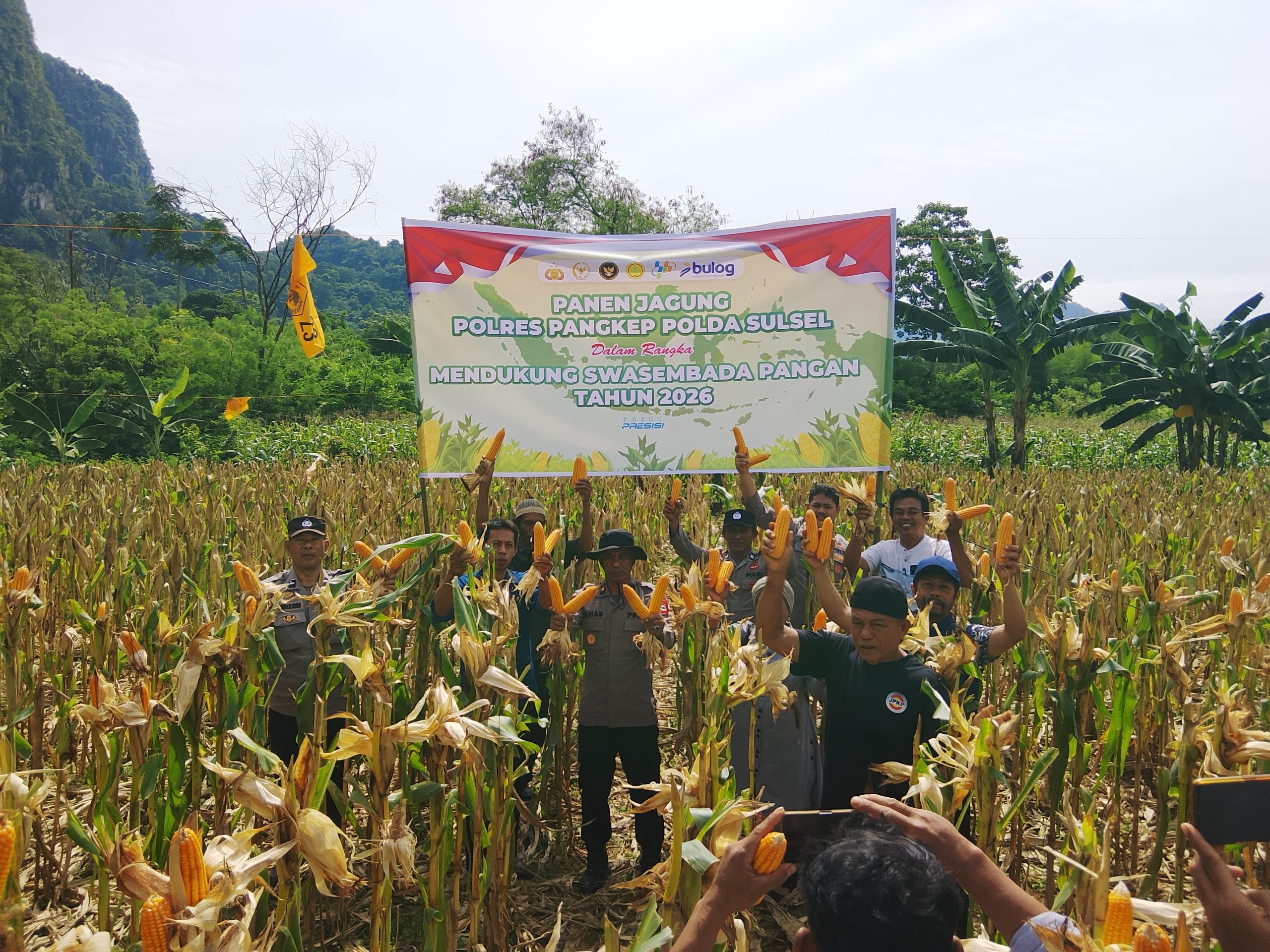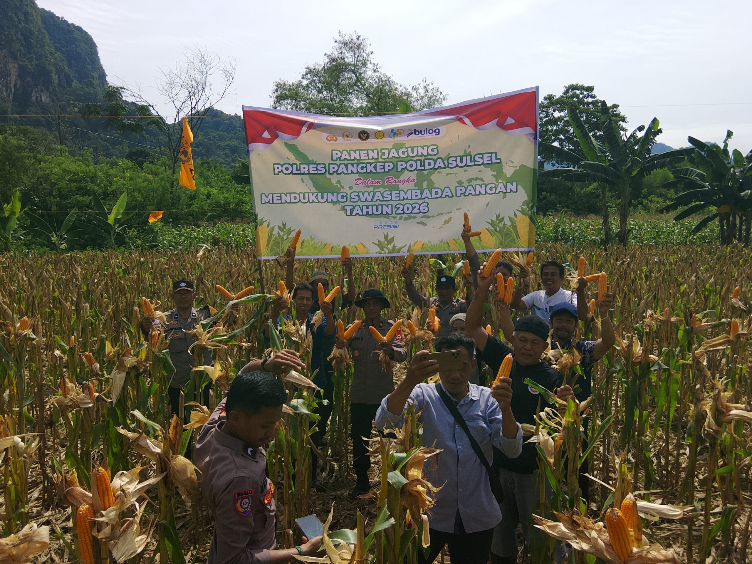 Bhabinkamtibmas Kelurahan Tonasa Hadiri Panen Jagung Polres Pangkep Dukung Swasembada Pangan Tahun 2026.