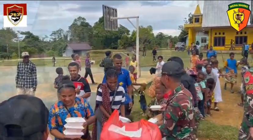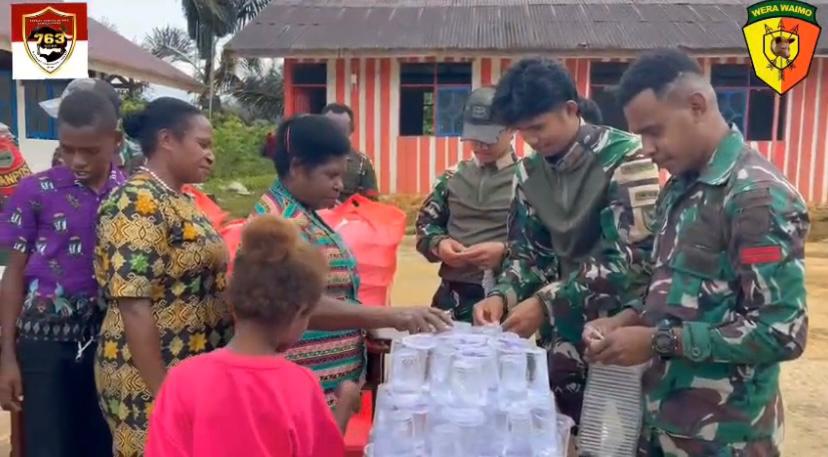 –klivetvindonesia.com– Bori – Satgas Pamtas Kewilayahan RI-PNG Yonif 763/SBA Pos Bori mengadakan kegiatan berbagi di Kampung Bori. Kegiatan dilaksanakan setelah pelaksanaan Ibadah Umat Nasrani. Kegiatan ini merupakan bentuk kepedulian TNI terhadap masyarakat yang tinggal di wilayah perbatasan. (26/1/2026).