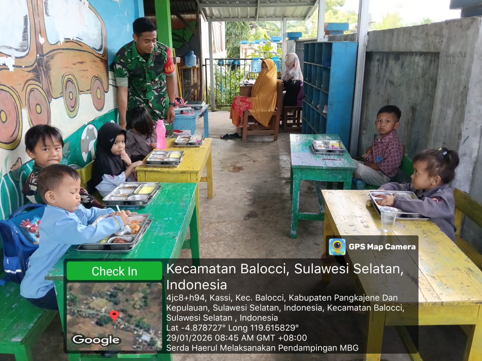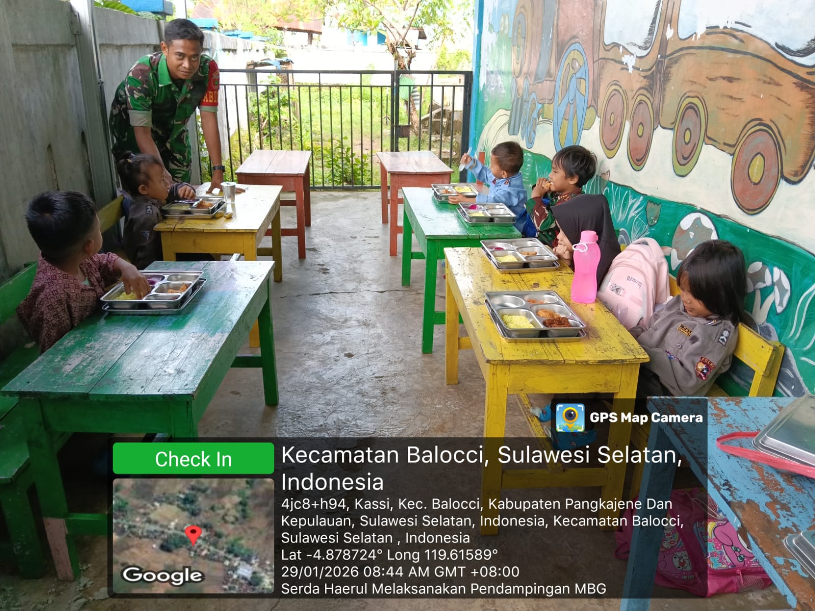 Serda Haerul selaku Babinsa Kelurahan Kassi turut melakukan pemantauan langsung selama kegiatan berlangsung, mulai dari pendistribusian makanan hingga proses konsumsi oleh para siswa-siswi. Hal ini dilakukan untuk memastikan kegiatan berjalan lancar, aman, dan sesuai dengan tujuan program MBG, yaitu meningkatkan asupan gizi serta mendukung tumbuh kembang anak sejak usia dini.