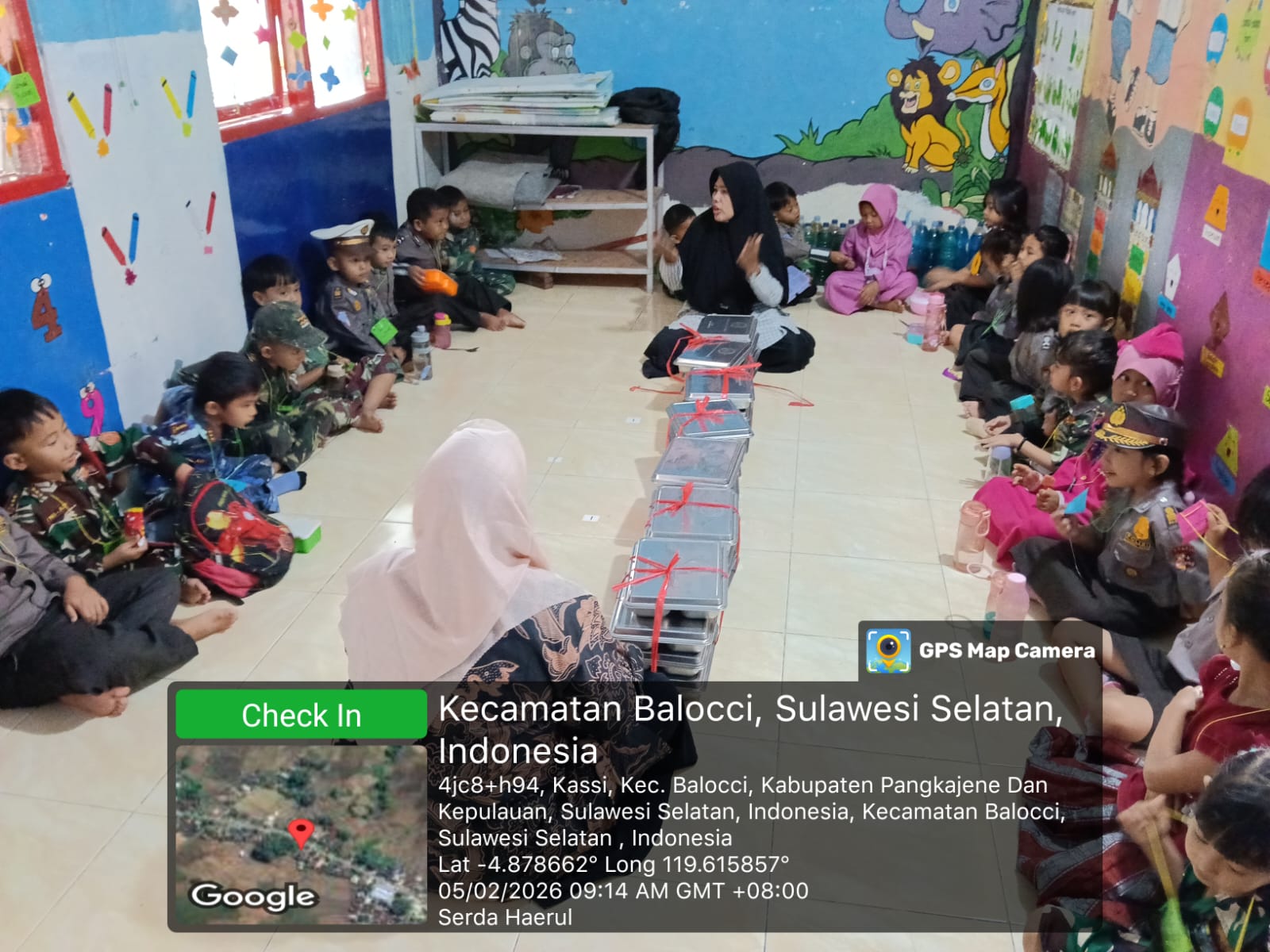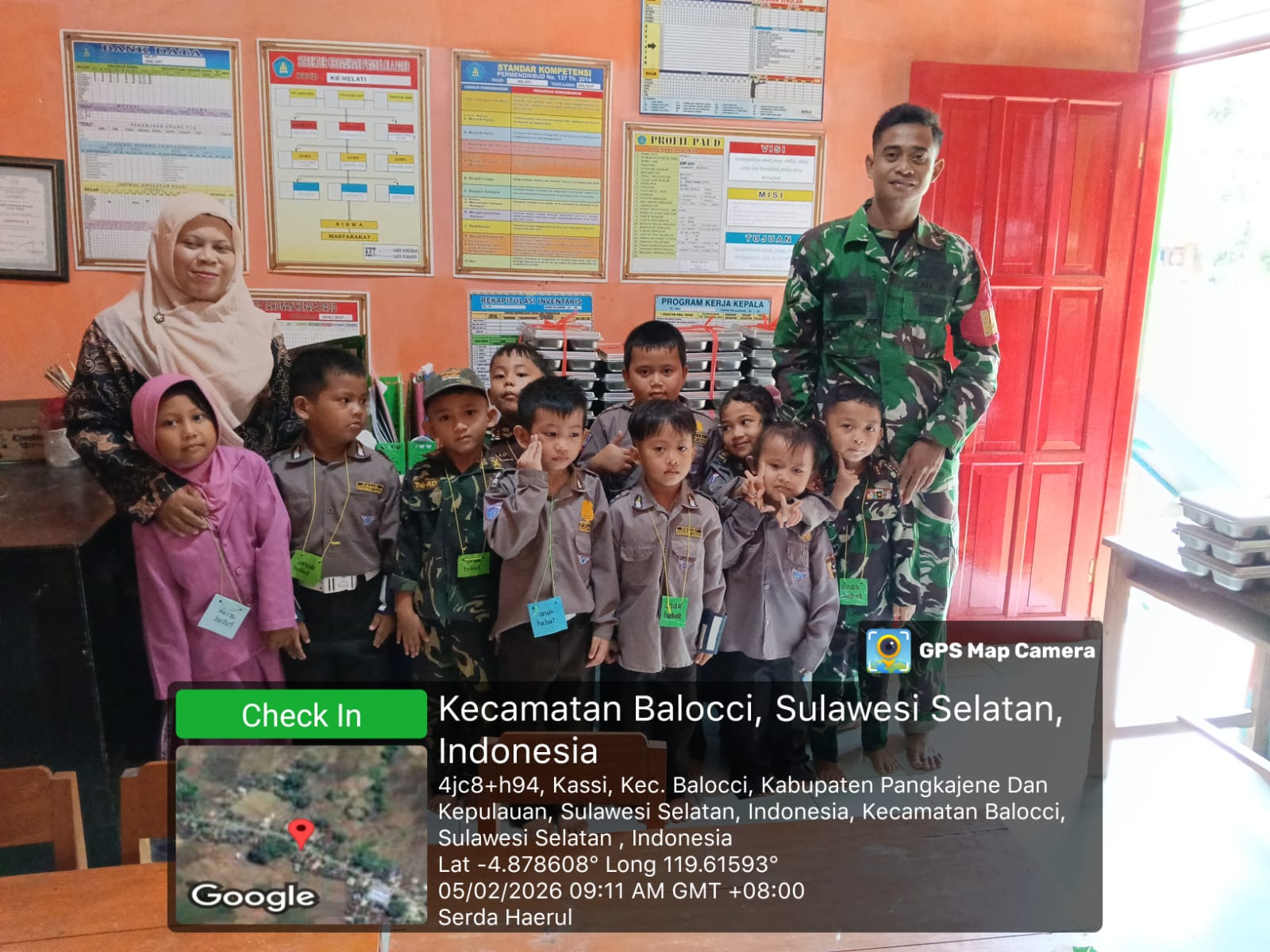 PANGKEP- KLTV INDONESIA klivetvindonesia.com. Balocci, Pangkep — Dalam rangka mendukung program pemerintah di bidang peningkatan gizi anak usia dini, Babinsa Kelurahan Kassi, Serda Haerul, melaksanakan kegiatan pendampingan Makan Bergizi Gratis (MBG) bagi siswa-siswi KB Melati yang berada di wilayah Kelurahan Kassi, Kecamatan Balocci, Kabupaten Pangkep, pada Kamis (05/02/2026).
