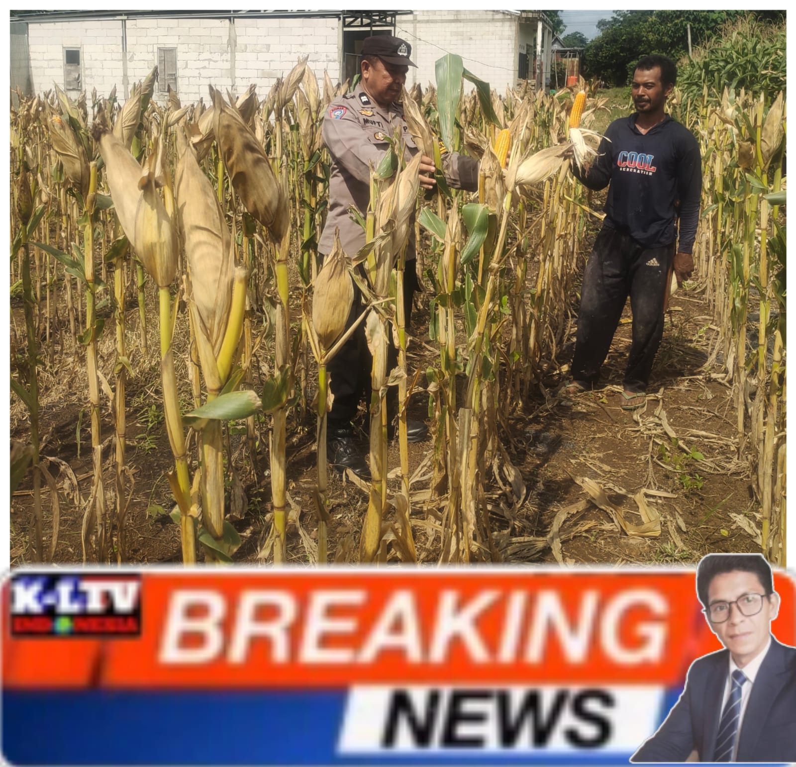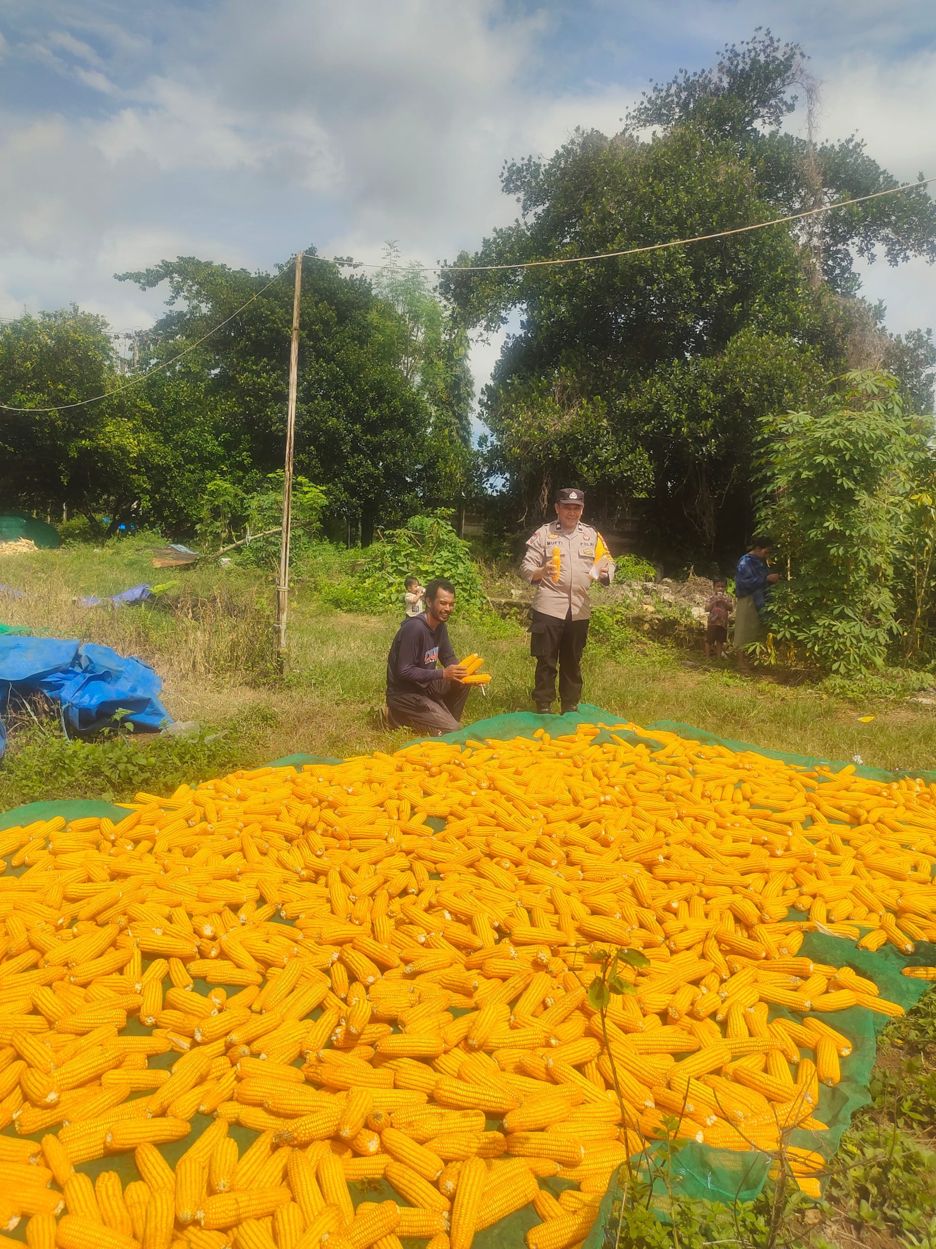 Dalam kegiatan tersebut, Aiptu Mufti melakukan pengecekan langsung terhadap kondisi tanaman jagung yang saat ini telah memasuki masa panen. Namun demikian, proses panen masih terkendala faktor cuaca, mengingat intensitas hujan yang cukup sering terjadi di wilayah tersebut.