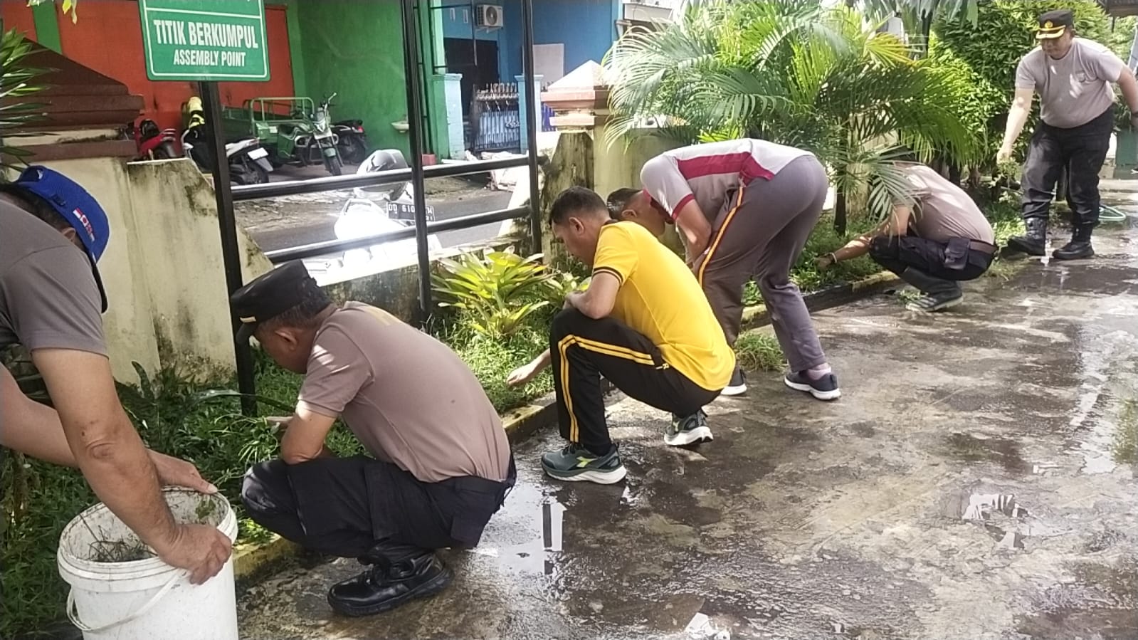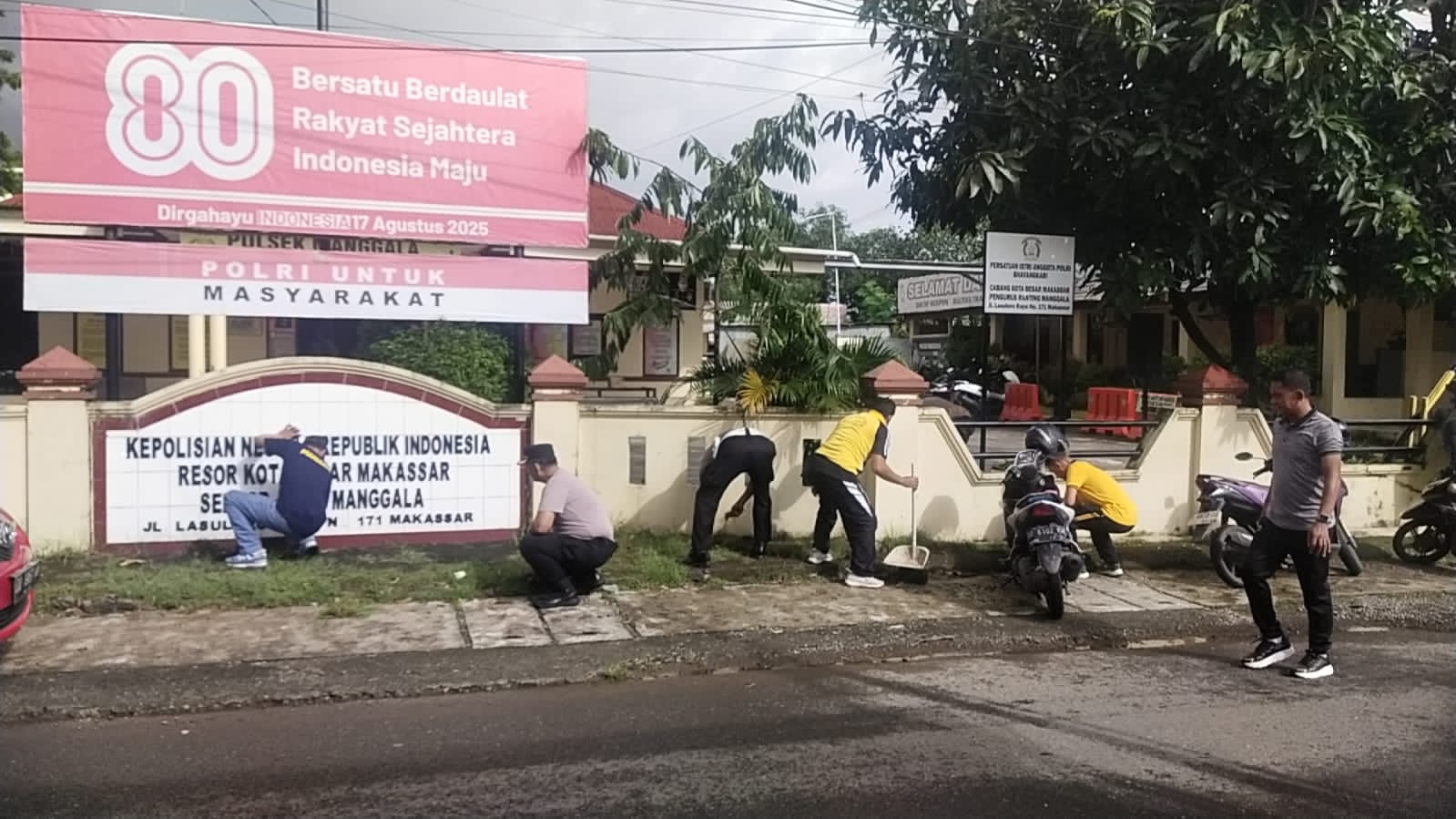 Kegiatan berlangsung dengan penuh semangat dan kebersamaan, mencerminkan soliditas serta kepedulian personel Polsek Manggala terhadap lingkungan kerja yang sehat dan bersih