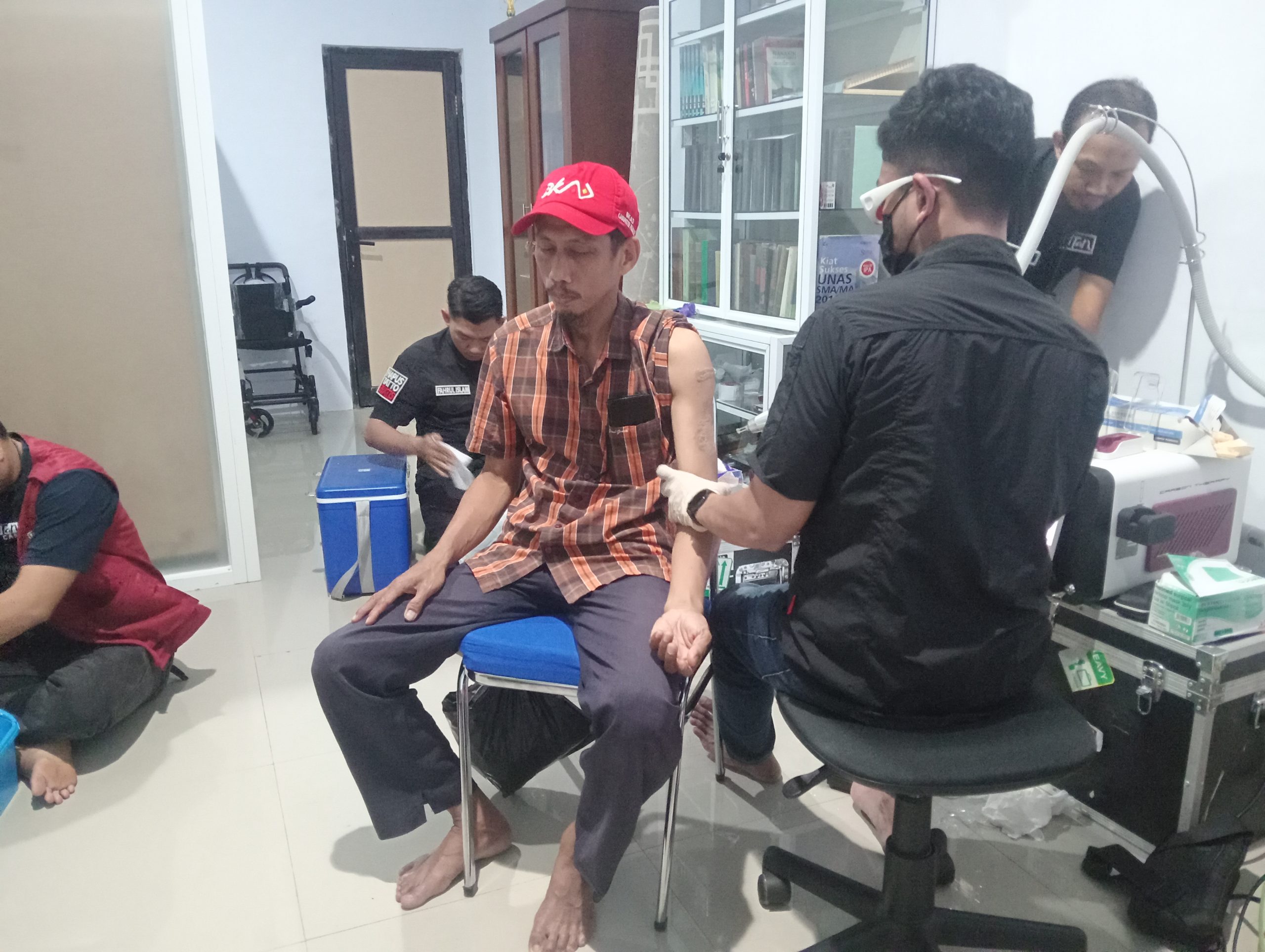 “Jadi kegiatan ini tidak dipungut biaya alias gratis, peserta hapus tattoo, cukup membawa hasil lab darah HIV HBSAG Dan GDS Serta Hafalan Surah Ar Rahman atau surah surah pendek. Apapun hasil pemeriksaan darahnya, tetap kami hapus tattonya.” Ujar dokter spesialis ortopedi subspesialis pediatric yang berpraktik di Primaya Hospital Makassar itu.