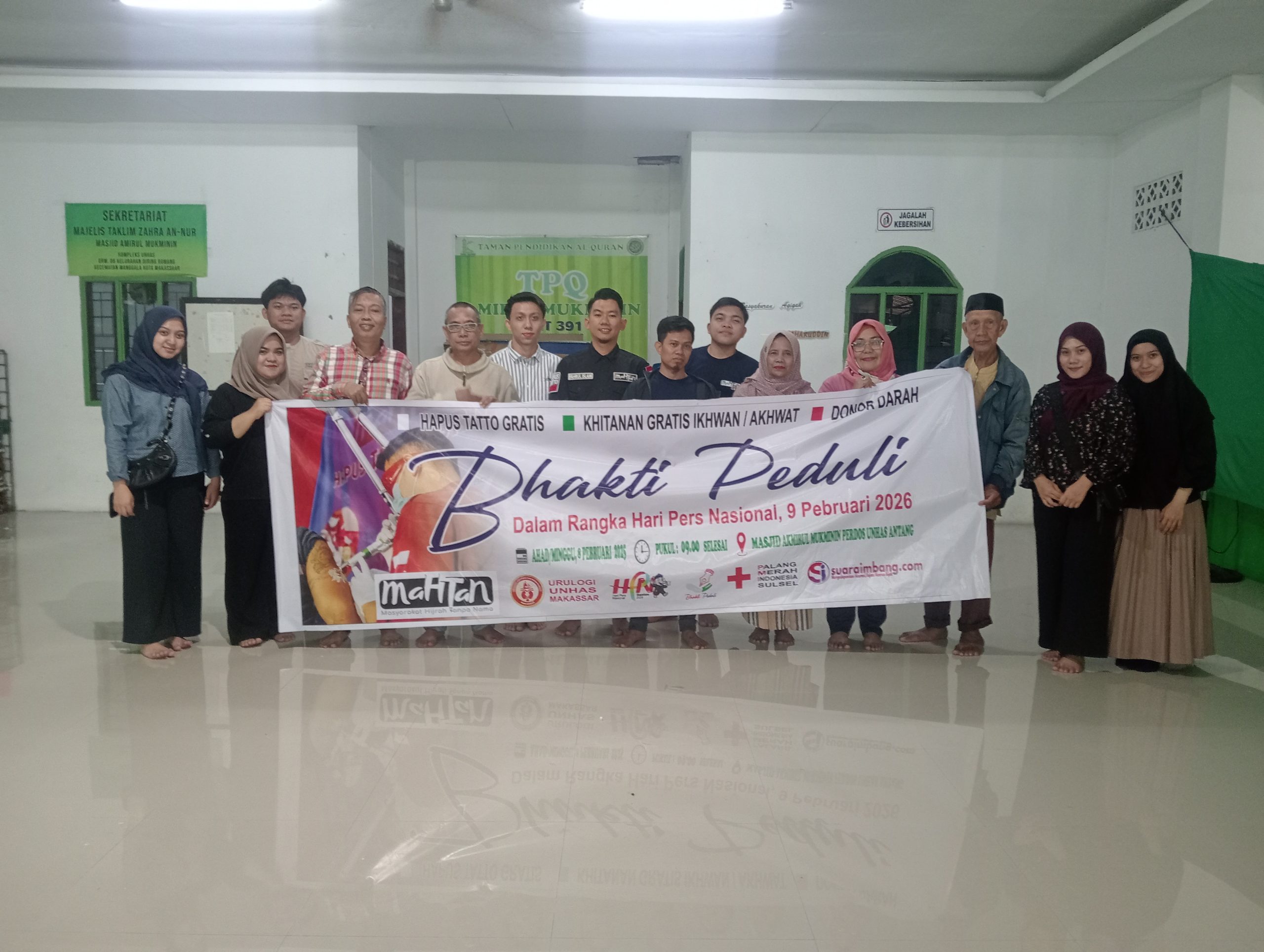 Klivetvindonesia.com-Makassar. Yayasan Msyarakat Hijrah Tanpa Nama (Mahtan) berhasil melaksanakan kegiatan Hapus Tatto, Sunatan Massal dan Donor Darah yang berlangsung di masjid Akmirul Mukminin, kompleks Perumahan Dosen Unhas, Minggu (8/2/2026) pagi.