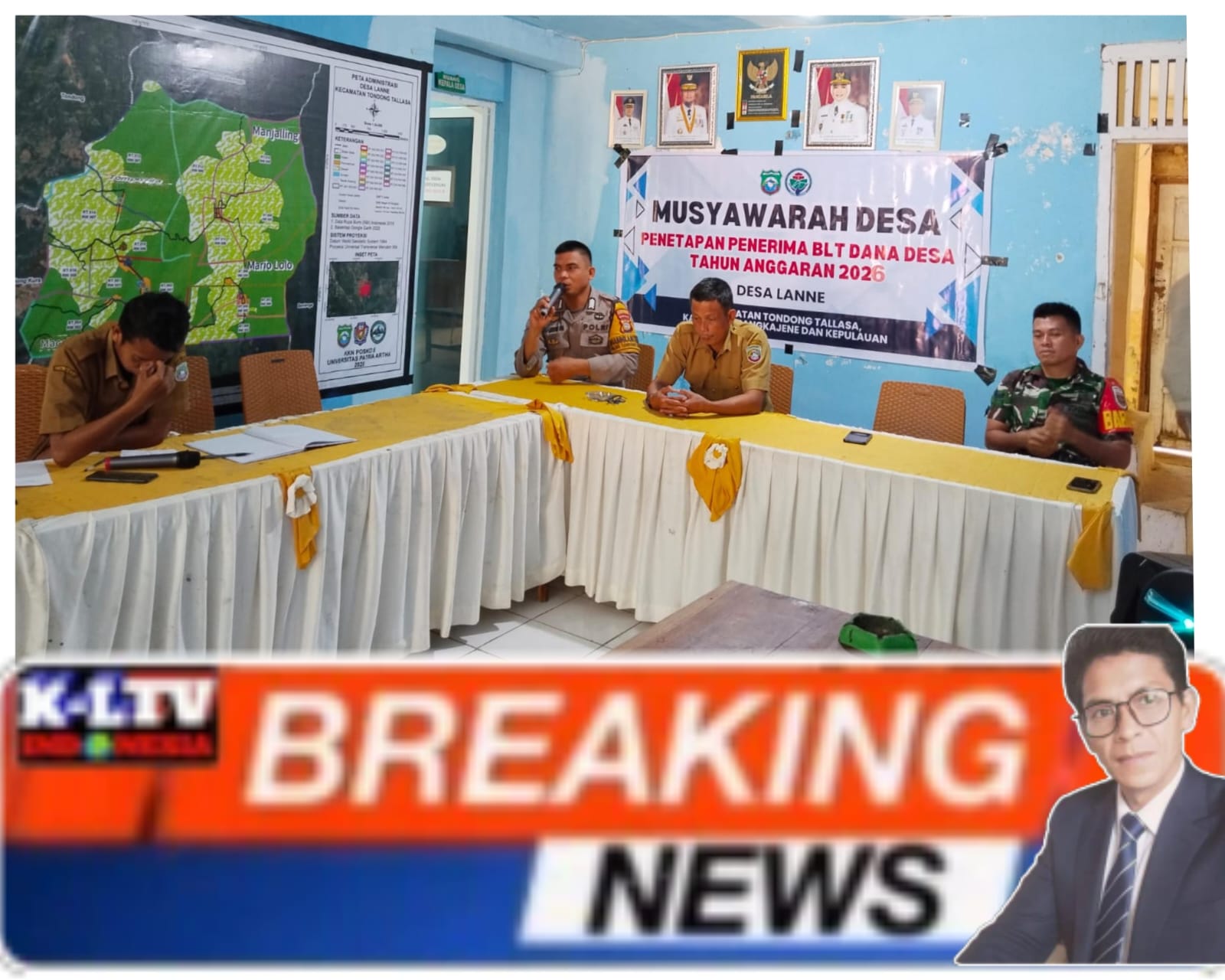 PANGKEP- KLTV INDONESIA klivetvindonesia.com.Kepala desa Lanne M. Sukri bersama jajarannya Babinsa Sertu Achmad Pahri Pali Bhabinkamtibmas Bripka Muh. Ridwan, S. H. bersama ketua BPD Suwarjono dan anggota Hadiri penetapan penerima keluarga penerima manfaat bantuan langsung tunai dana desa tahun 2026 ini