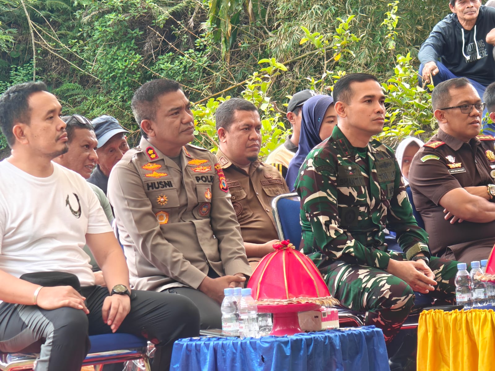 Dalam kegiatan tersebut, Kapolres Pangkep tampak didampingi oleh sejumlah unsur Forkopimda dan pejabat terkait, di antaranya Dandim 1421/Pangkep Letkol CZI Bhakti Yuhandika, M.I.P., Kajari Pangkep Jhon Ilef Malamassam, S.H., M.H., Kasat Sabhara Polres Pangkep AKP M. Irsal, S.H., Asisten III Kabupaten Pangkep, Kadis Kominfo Kabupaten Pangkep Nur Sofyan Has, S.E., M.Si., Camat Balocci M. Firmansyah Nur, S.STP., serta Kepala Desa Tompo Bulu Abd. Kadir Hakim, S.Pd.I. Turut hadir pula personel Kodim 1421/Pangkep, jajaran Polres Pangkep, serta masyarakat setempat yang antusias mengikuti jalannya kegiatan.