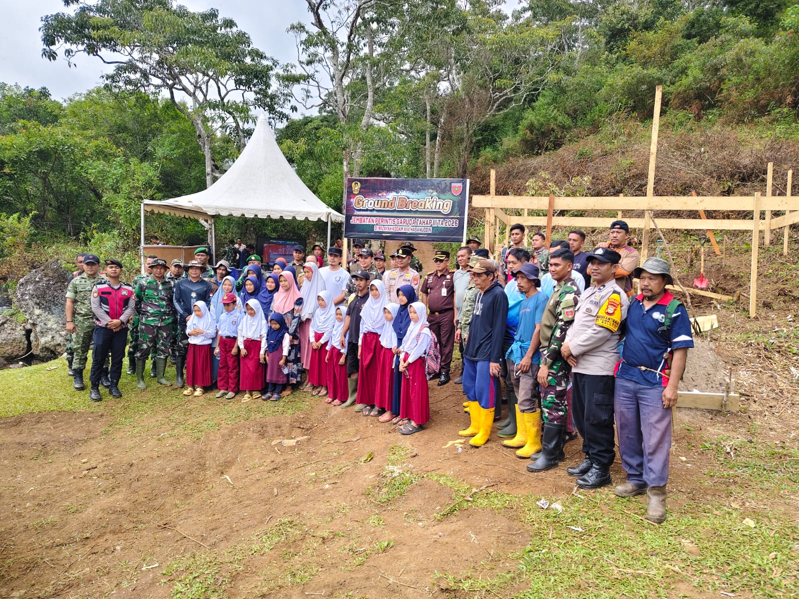 Ground breaking ini merupakan bagian dari program pembangunan infrastruktur yang digagas melalui Kodam XIV/Hasanuddin dalam rangka membuka akses wilayah terpencil dan meningkatkan konektivitas antar daerah. Pelaksanaan kegiatan dilakukan secara virtual (zoom meeting) yang terhubung dengan beberapa wilayah lainnya, sebagai tanda dimulainya pembangunan Jembatan Perintis Garuda Tahap III secara serentak.
