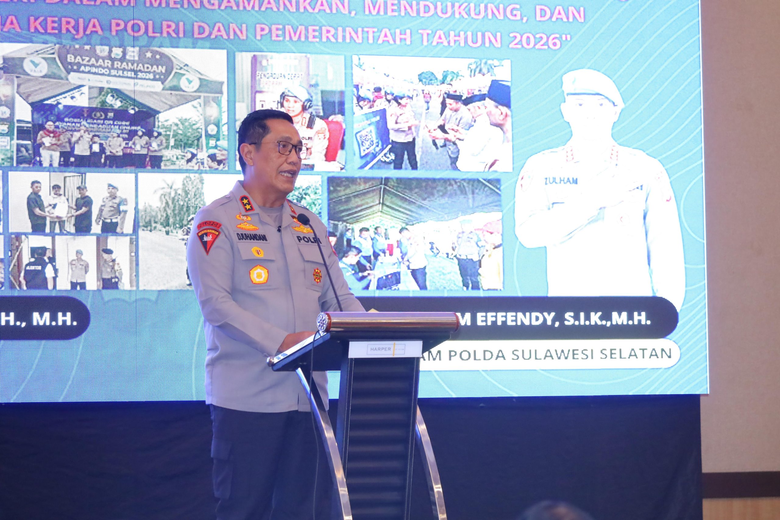KAPOLDA SULSEL- KLTV INDONESIA klivetvindonesia.com.Kapolda Sulawesi Selatan Irjen Pol. Djuhandhani Rahardjo Puro, S.H., M.H., secara resmi membuka kegiatan Rapat Kerja Teknis (Rakernis) Bidpropam Polda Sulsel Tahun Anggaran 2026 yang dilaksanakan di Hotel Harper, Selasa (07/04/2026).
