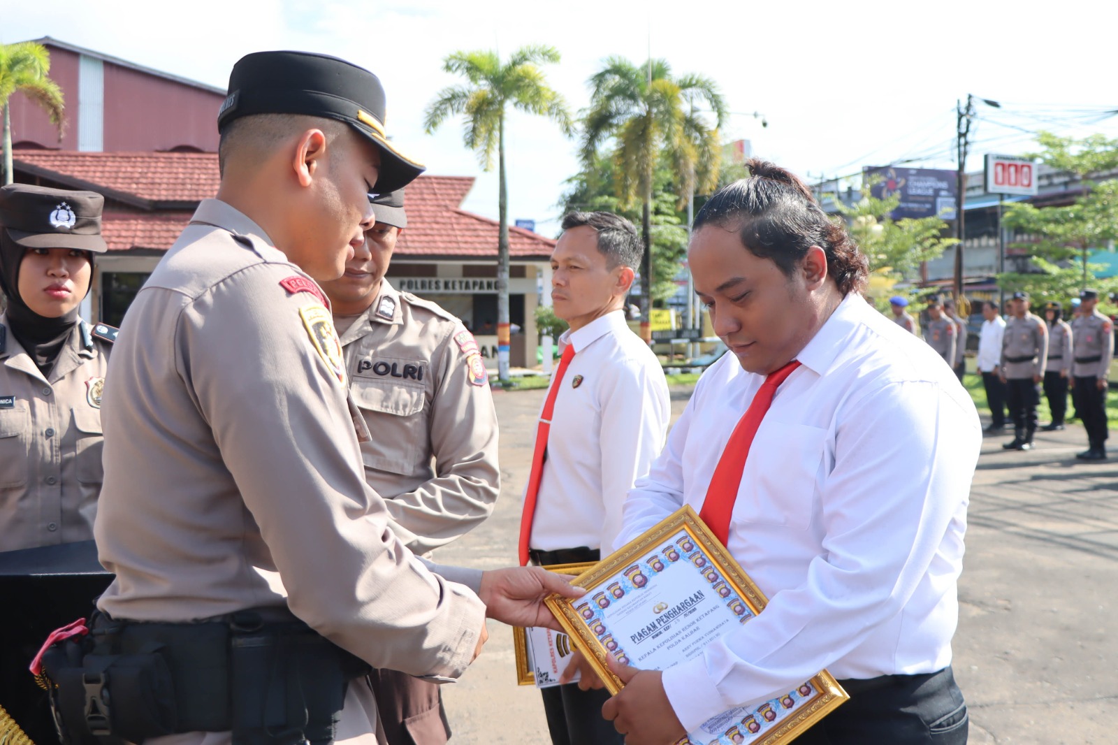 Kapolres Ketapang AKBP Muhammad Harris S.H., S.I.K., M.I.K., CPHR. yang diwakili Wakapolres Ketapang Kompol Hoerrudin, S.I.K., M.H. dalam amanatnya menyampaikan bahwa pemberian penghargaan ini merupakan bentuk motivasi bagi seluruh personel agar terus meningkatkan kinerja, profesionalisme, serta semangat dalam memberikan pelayanan terbaik kepada masyarakat.