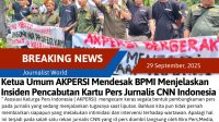 Berita UtamaLiza Giawa29/09/202505/10/2025 Ketua Umum AKPERSI Mendesak BPMI Menjelaskan Insiden Pencabutan Kartu Pers Jurnalis CNN Indonesia Jakarta – Dunia Pers lagi tidak baik – baik saja masih juga terjadi upaya pembungkaman […]